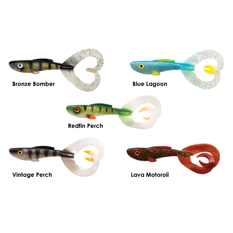 Abu Beast Twin Tail har en klassisk shad-profil men är även utrustad med en stor twin tail som ger en attraherande simrörelse och lockande vibration i vattnet. Kan tacklas med ett tungt jigghuvud/skruvskalle för att komma ner till djupet eller med shallow stinger-rigg för att få en mer grundgående presentation. Modellen finns i två storlekar!