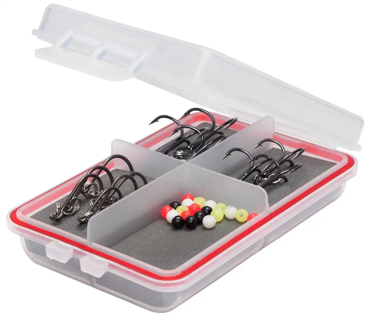 Abu Sölv Seatrout Hook Kit – Sölv Seatrout Hook Kit från välkända Abu Garcia är liten betesask som innehåller enkel- och trekrokar som är perfekta för havsöringsfisket. Det medföljer även ett gäng pärlor i olika färger som gör att detta kit innehåller allt du behöver för genomlöpare men dessa krokar går även utmärkt att använda på klassiska skeddrag. Samtliga krokar levereras färdigmonterade med en fjäderring och en solid ring, vilket gör dom redo att bara fästa på ditt bete.