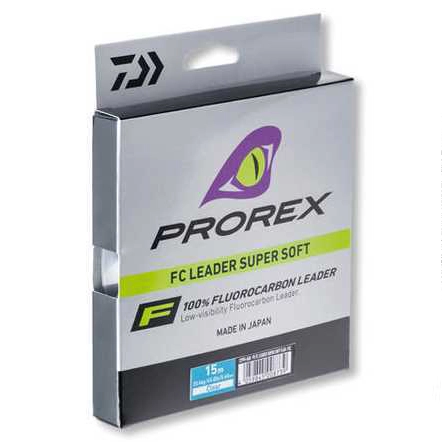Daiwa Prorex 100% Fluorocarbon Leader. Daiwa Prorex Fluorocarbon är ett tafsmaterial som är tillverkat i Japan som har väldigt hög nötningstålighet men är väldigt smidig och mjuk. Ett perfekt material att knyta tafsar till t.ex gäddfisket eller havsfisket. Daiwa Prorex Fluorocarbon är nästan helt osynlig under vattnet och har väldigt lite stretch. Levereras om 15-50 meter per spole beroende på grovlek.