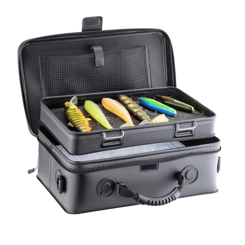Daiwa Prorex XL Lure Storage – Denna premiumväska i solid och robust EVA-material ger mycket utrymme för dina XL drag, tillbehör och tänger! Det övre facket inuti huvudfacket kan avlägsnas helt, så du får plats med en större betesbox och annan mindre utrustning.
