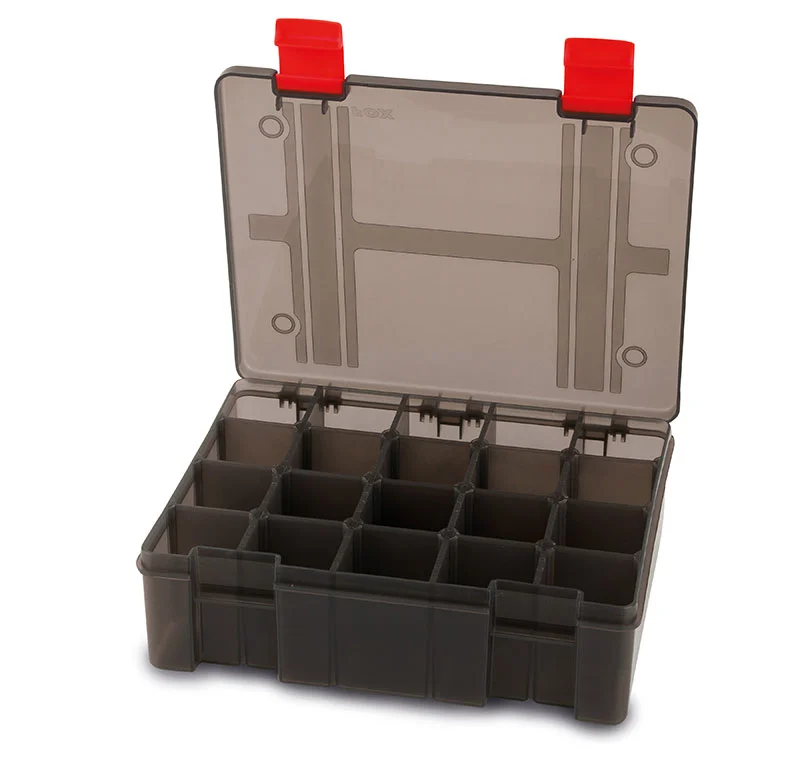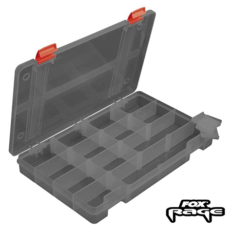 Fox Rage Stack´n Store 16 – Ett vinnande koncept inom organisation och förvaring dessa lådor är gjorda av hållbar plast och har justerbara individuella fack. Skydd och förslutningar är separat avtagbara, inte fasta och kan därför inte brytas av. Dessutom är lådorna mjukgörarbeständiga och därför lämpliga för lagring av alla typer av gummibeten. Finns i fem versioner. Färg: grå-transparent med UV-filter (vilket förhindrar blekning av betena).