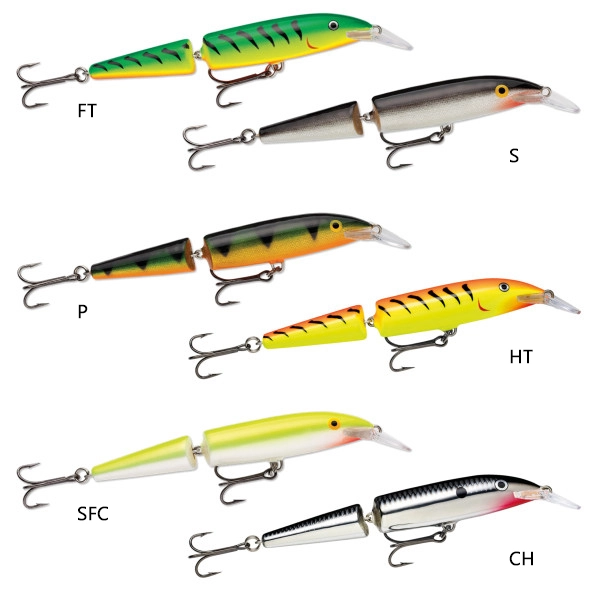 Rapala Jointed Floating 13cm – En flytande, ledad version av Original, som du kan förlita dig till då fisken är speciellt svårflirtad! Jointed, kallad ”den stressadeRapala- wobblern”, har en mycket livlig, simrörelse- en helt oemotståndlig höftrörelse! Om fisken är alldeles hopplöst trög, försök då med en Jointed i en stark irritationsfärg!Jointed rekommenderas för fiske i grunda och klara vatten men kan även göra susen i kalla vatten eller svår vattenterräng. Jointed lämpar sig för extremt långsam invevning eller låg trollinghastighet – simrörelsen försämras inte.